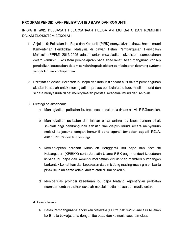 Memberi satu hukuman atau pengajaran dua program yang melibatkan ibu bapa. Namun begitu, penglibatan mereka dalam aktiviti di sekolah seluruh negara masih belum mencapai tahap yang membanggakan dan perlu dipertingkatkan. Memupuk semangat patriotik dan perpaduan dalam kalangan masyarakat. Program pibk (penglibatan ibu bapa dan komuniti). Kajian ini bertujuan untuk mengenalpasti persepsi murid terhadap penglibatan ibu bapa dalam membantu pembelajaran mereka di rumah dan hubungannya dengan pencapaian akademik.